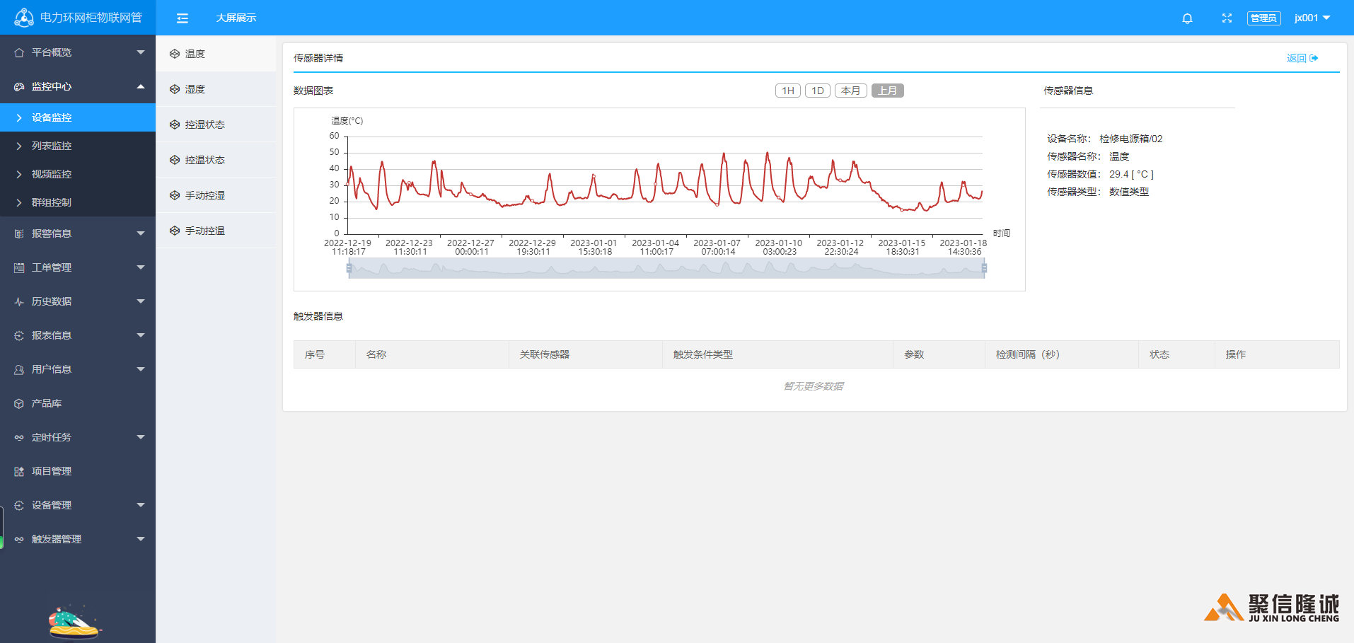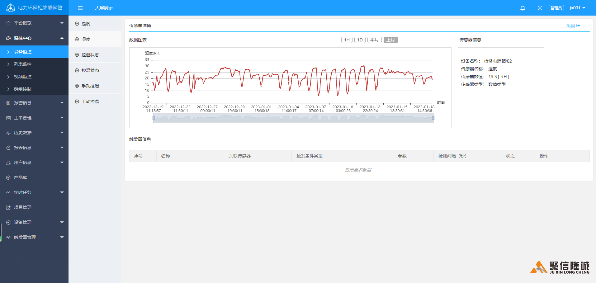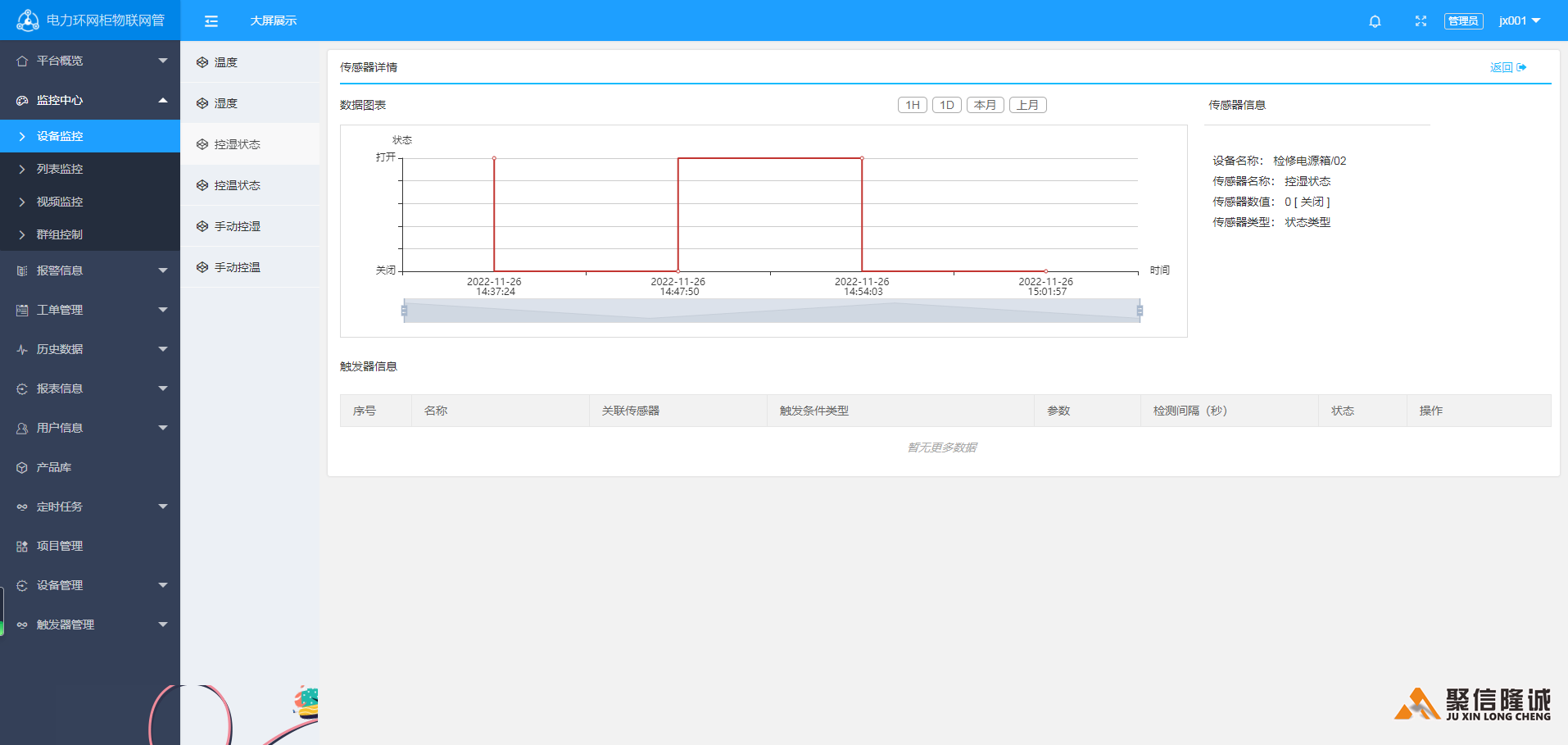 描述:無(wú)線遠(yuǎn)程控制系統(tǒng)可以通過(guò)PC端實(shí)時(shí)監(jiān)測(cè)遠(yuǎn)程溫濕度數(shù)據(jù)變化,并可手動(dòng)開(kāi)啟遠(yuǎn)端設(shè)備運(yùn)行;該系統(tǒng)大大減少了人工去現(xiàn)場(chǎng)逐個(gè)查看的工作量,系統(tǒng)可多站點(diǎn)多用戶分權(quán)限查看各自的站點(diǎn)。